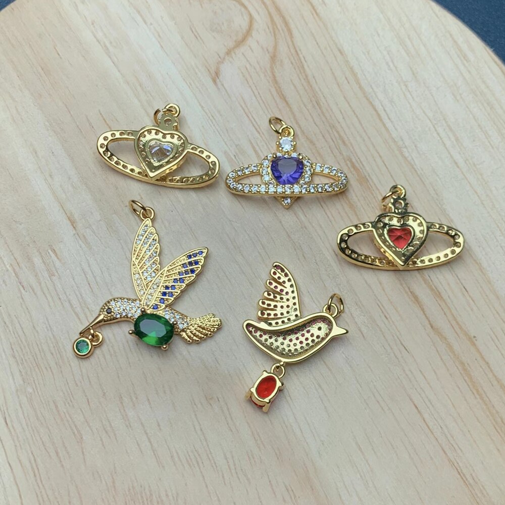 2022 Fashion Zircon Love Heart Peace Dove Bird Pendants Charms For Jewelry Making DIY Necklace Earrings Accessories Wholesale