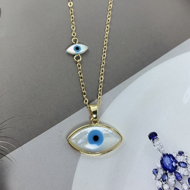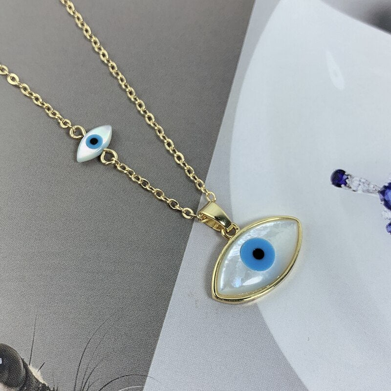 Fashion Blue Marquise Evil Eye Pendant Necklace Women Gold Plated Chain Natural MOP Pearl Shell Charm Choker For Girl Jewelry