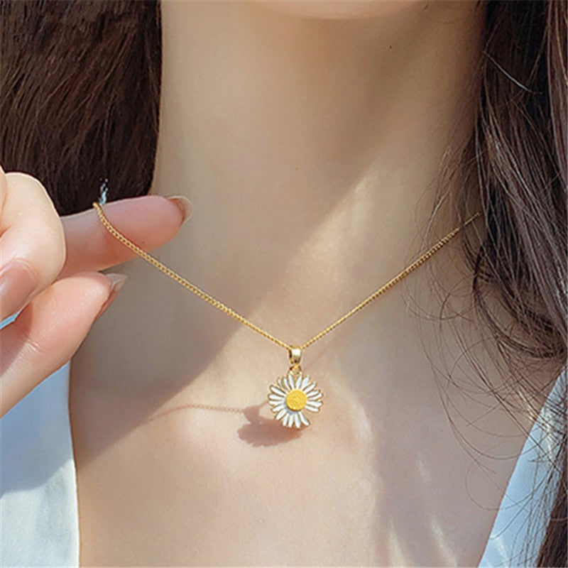 Ring, necklaces, and bracelet with pretty sunflower design. Good for completing bright outfits.