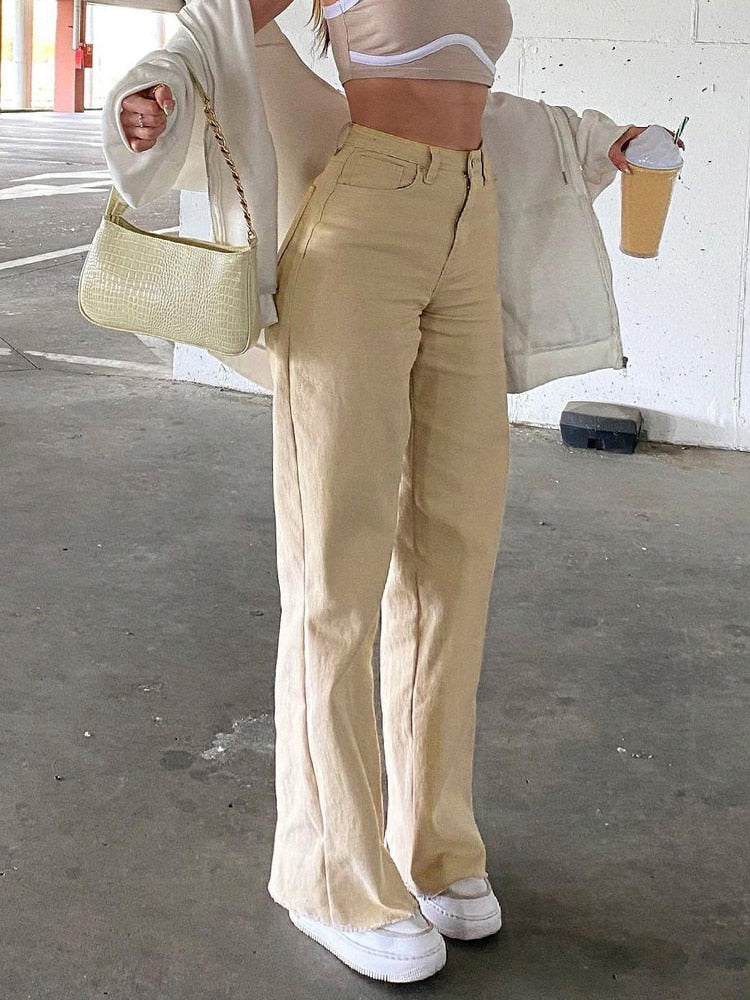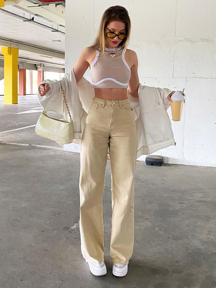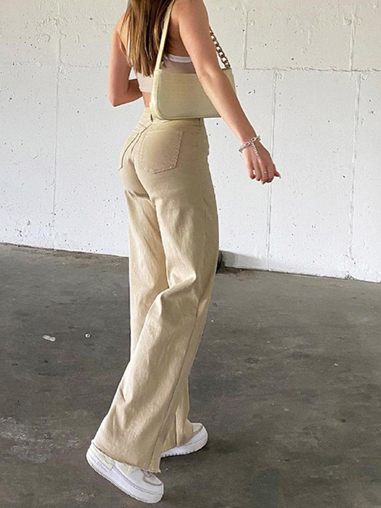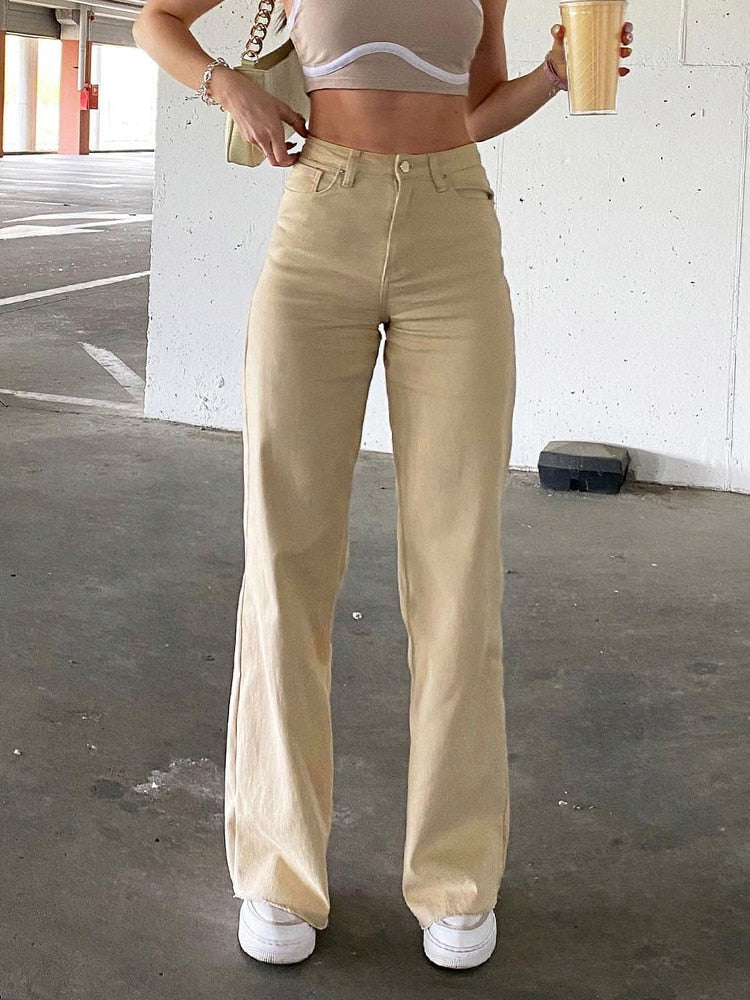 Crafted with meticulous attention to detail, our high-waist khaki pants exude timeless elegance. The khaki color adds a touch of sophistication and versatility, allowing you to effortlessly style these pants for both casual and more formal occasions.