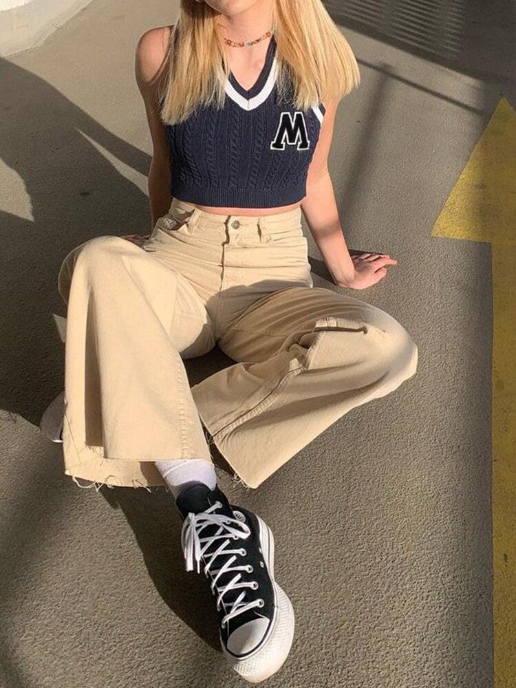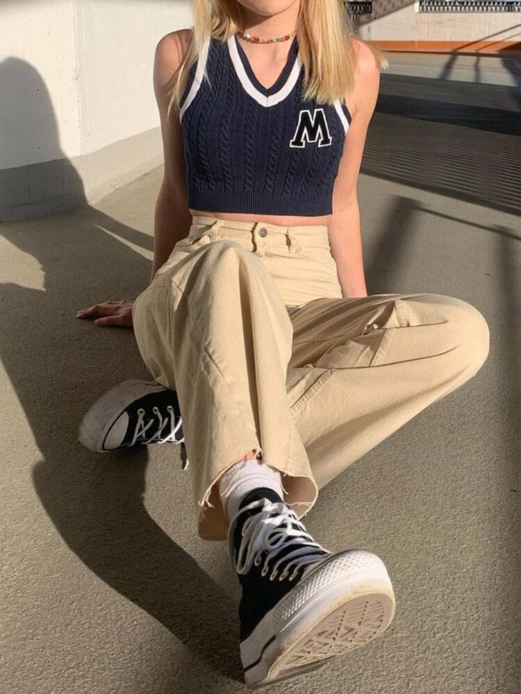 Crafted from a blend of high-quality materials, this tank top sweater provides a comfortable and lightweight feel, perfect for transitioning between seasons. Its sleeveless design and relaxed fit offer a flattering silhouette and effortless style. Whether paired with jeans for a laid-back weekend look or dressed up with a statement necklace and tailored pants for a more polished ensemble, this tank top sweater with its distinctive "M" print is a versatile wardrobe staple that effortlessly combines comfort and fashion-forward aesthetics. Make a statement and embrace a contemporary sense of style with our letter-adorned tank top sweater.