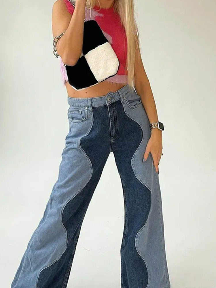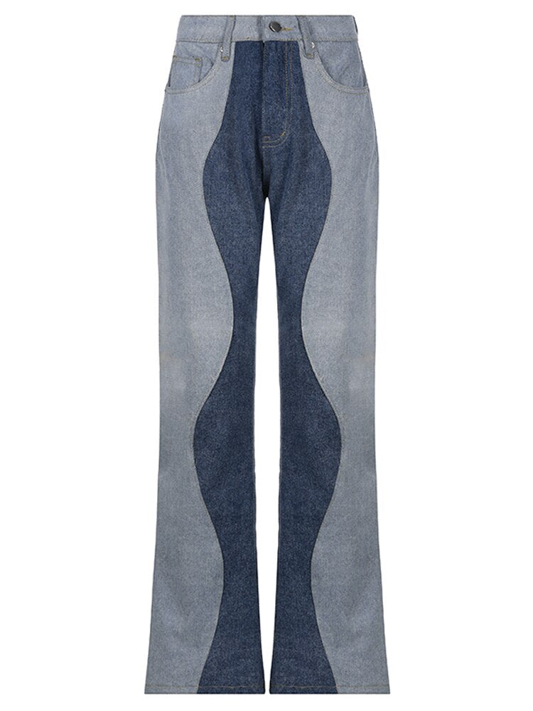 Wavy High Waist Patchwork Jeans