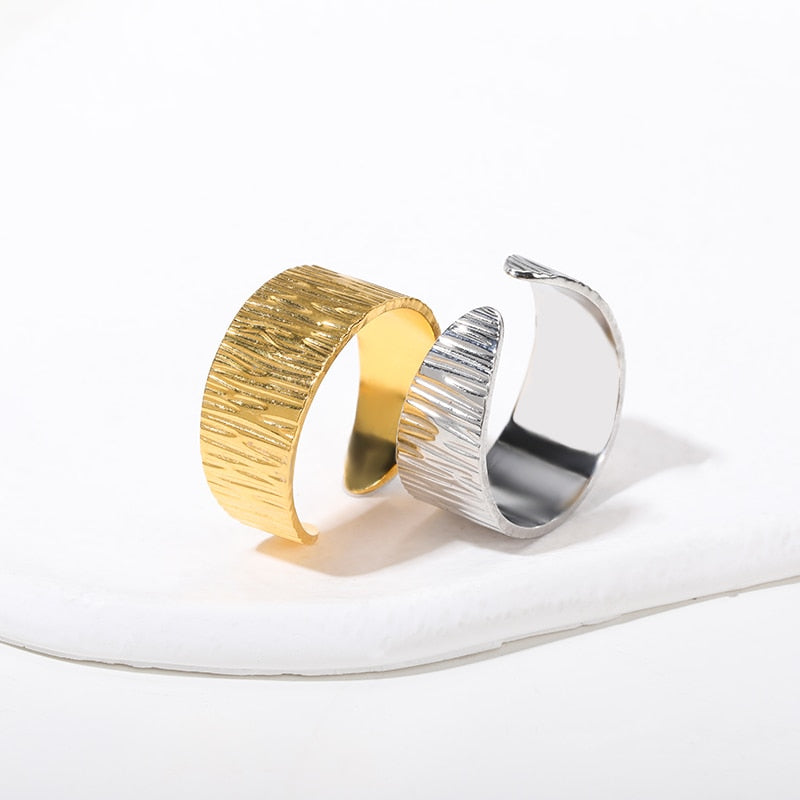 Stainless Steal Roman Numeral and Wood Grain Design Rings.