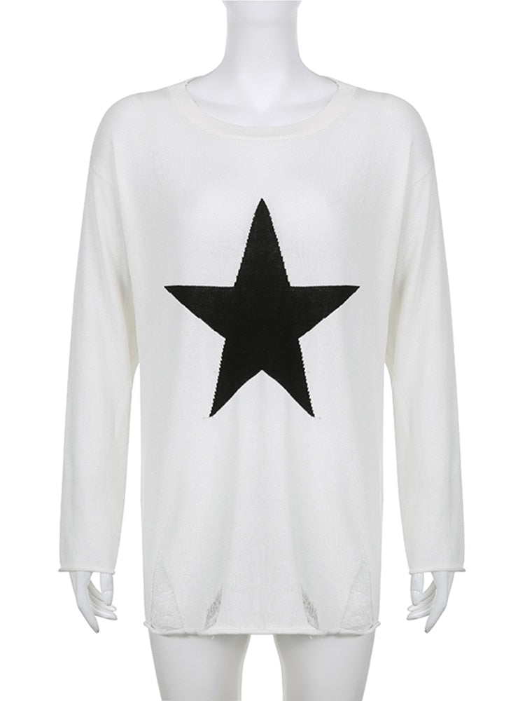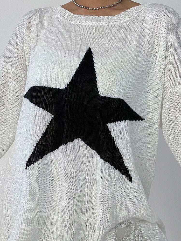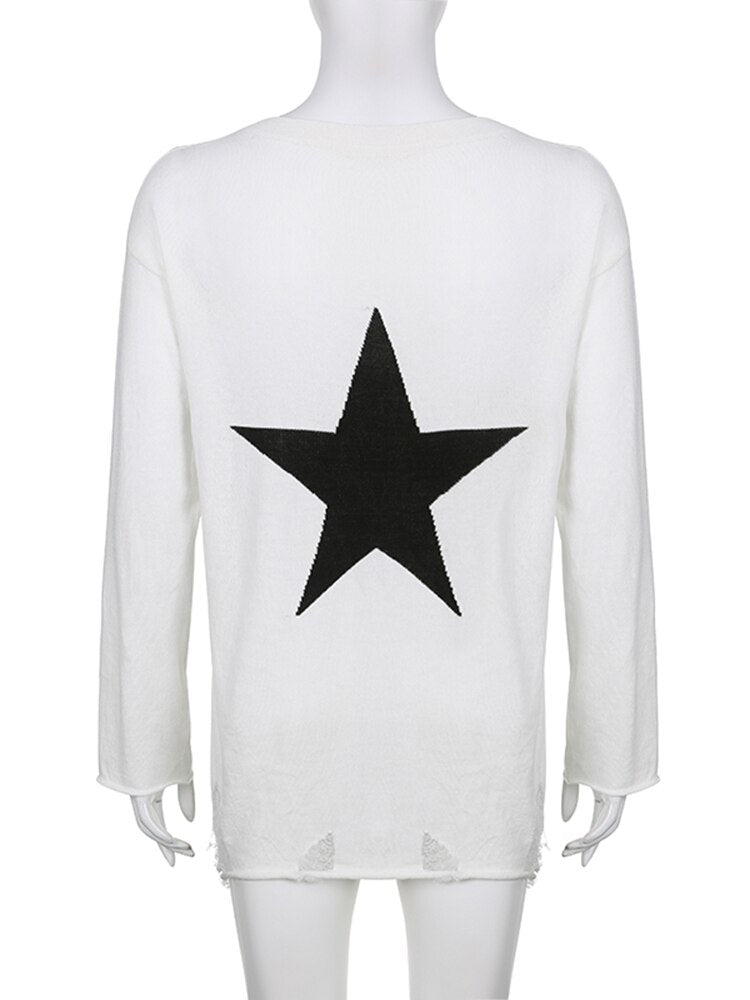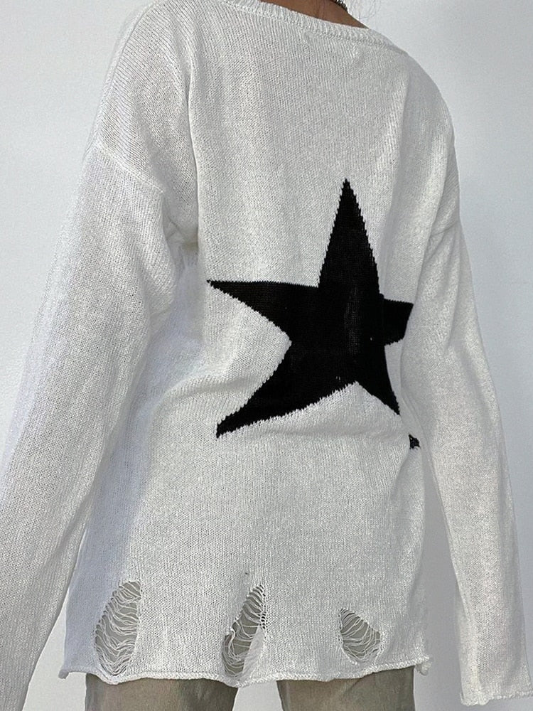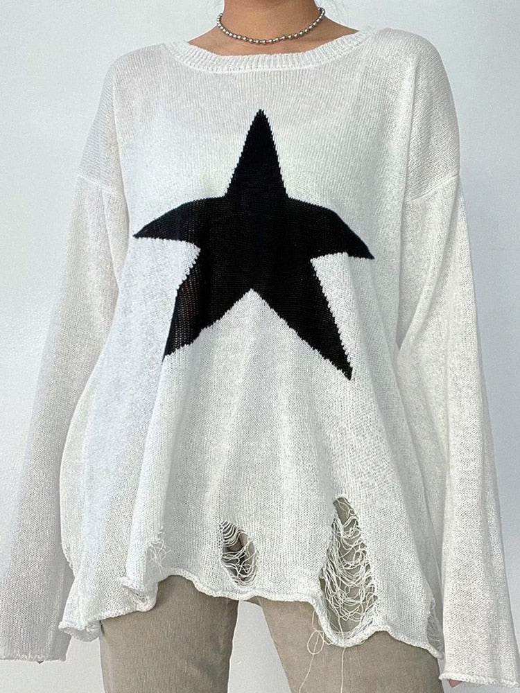 Distressed Oversized Star Sweater