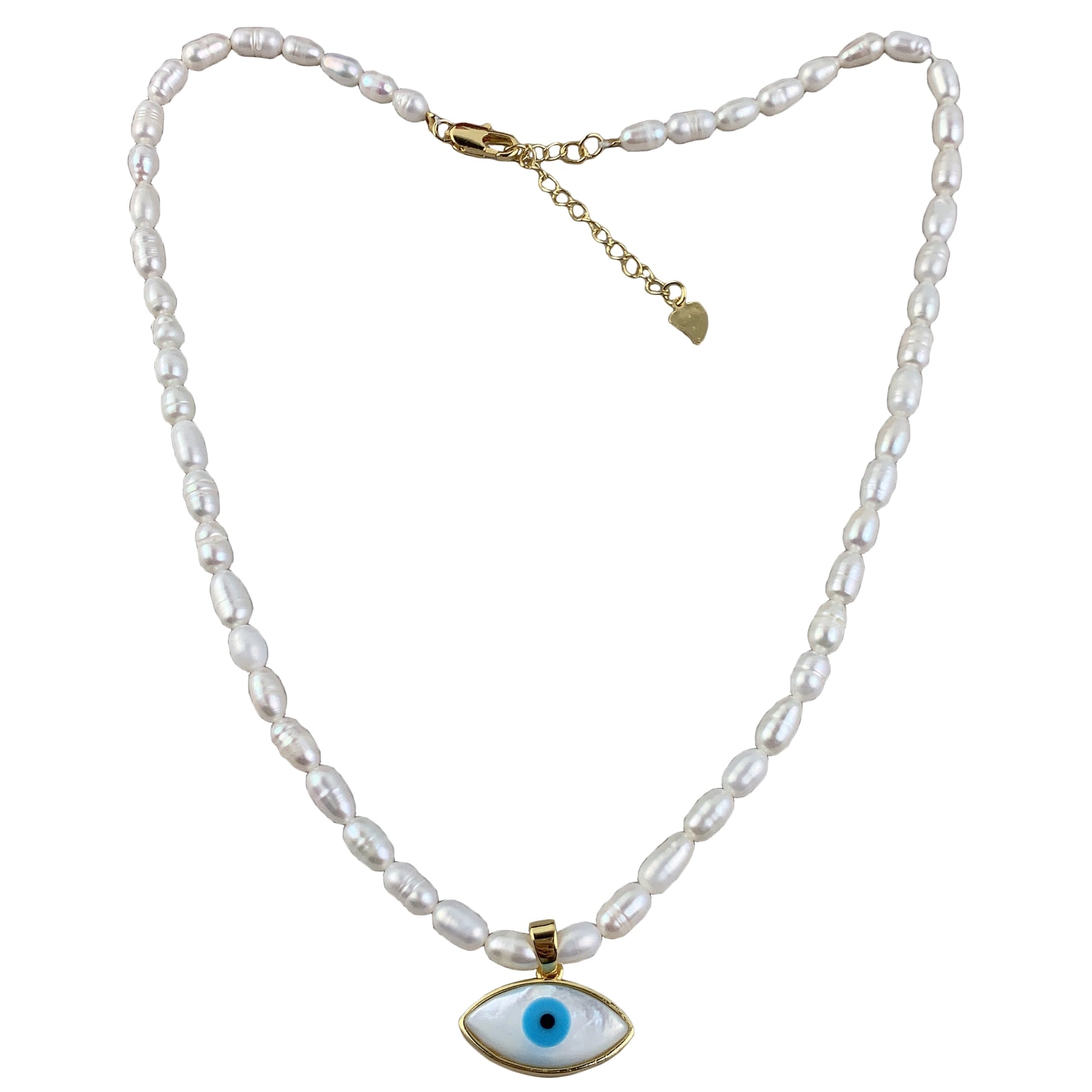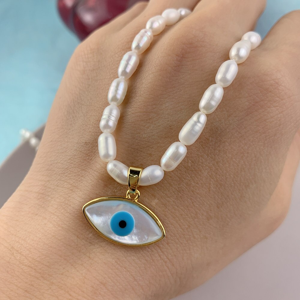 Natural Pearl Evil Eye Necklace Fashion Mother Of Pearl Shell Pendant Beaded Necklaces For Women 2021Gifts Jewelry