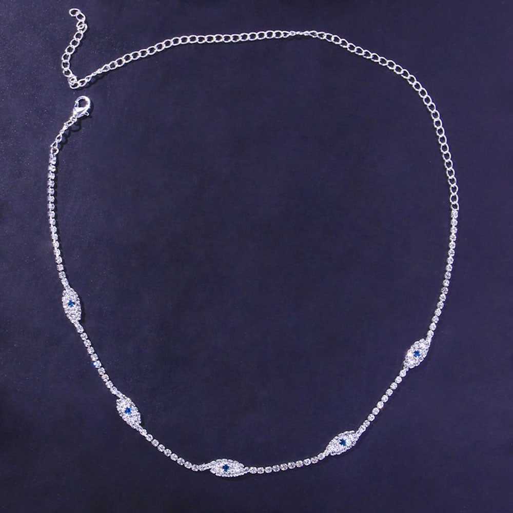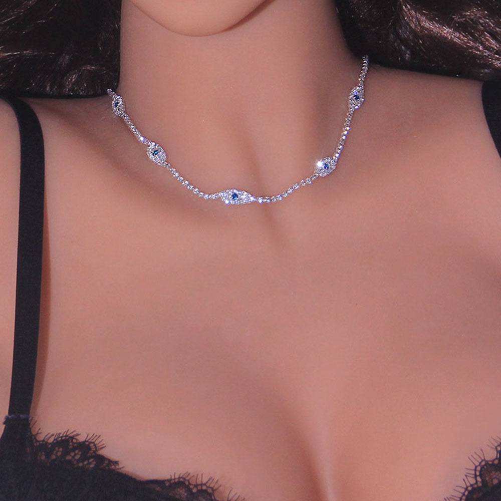 Stonefans Fashion Evil Eye Tennis Choker Rhinestone Necklace for Women Charm Collar Chain Blue Crystal Necklace Evil Eye Jewelry