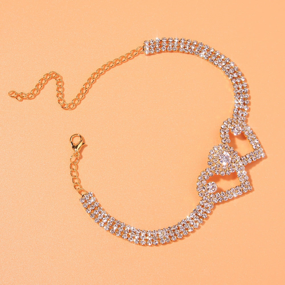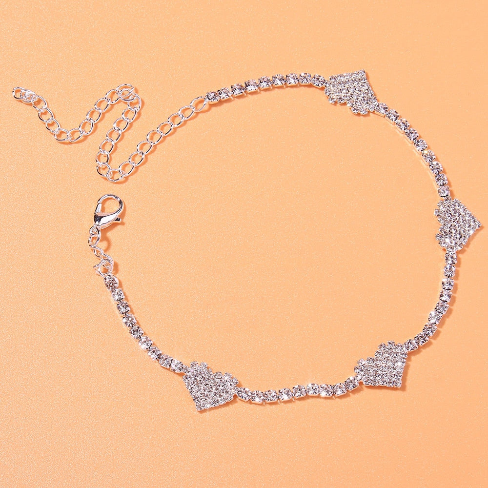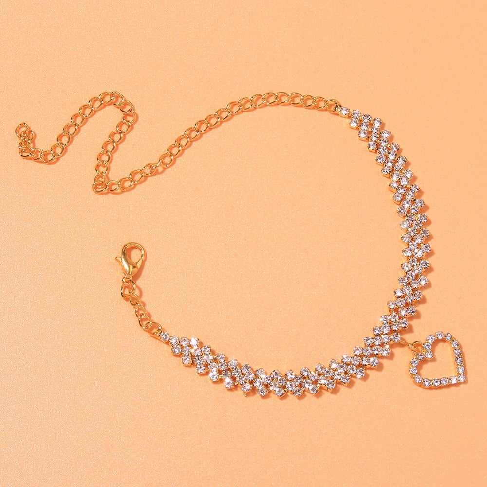 Stonefans Fashion Heart Rhinestone Anklets Wholesale Jewelry for Women Beach Barefoot Love Pendant Anklet Bracelet Leg Chain
