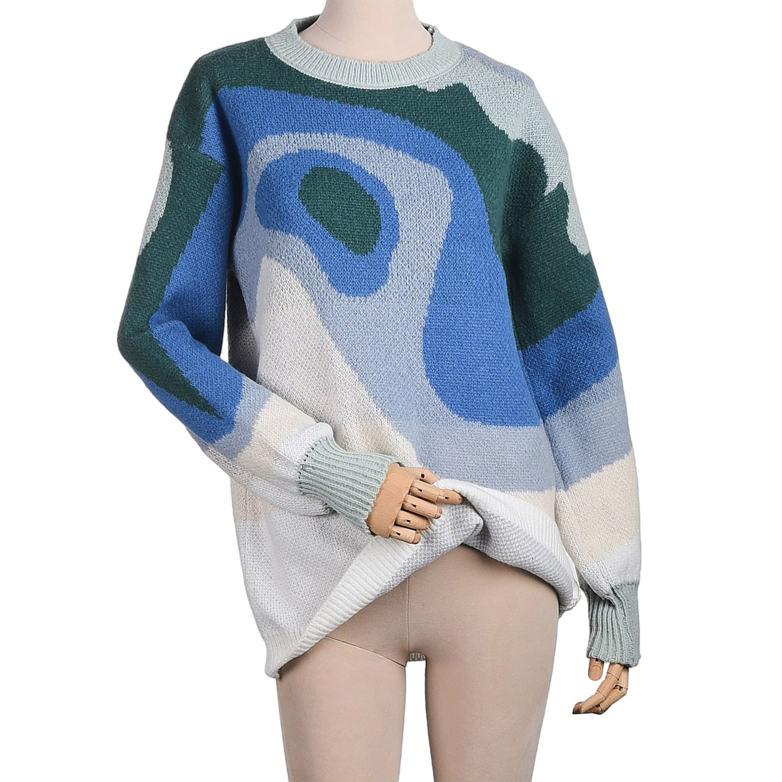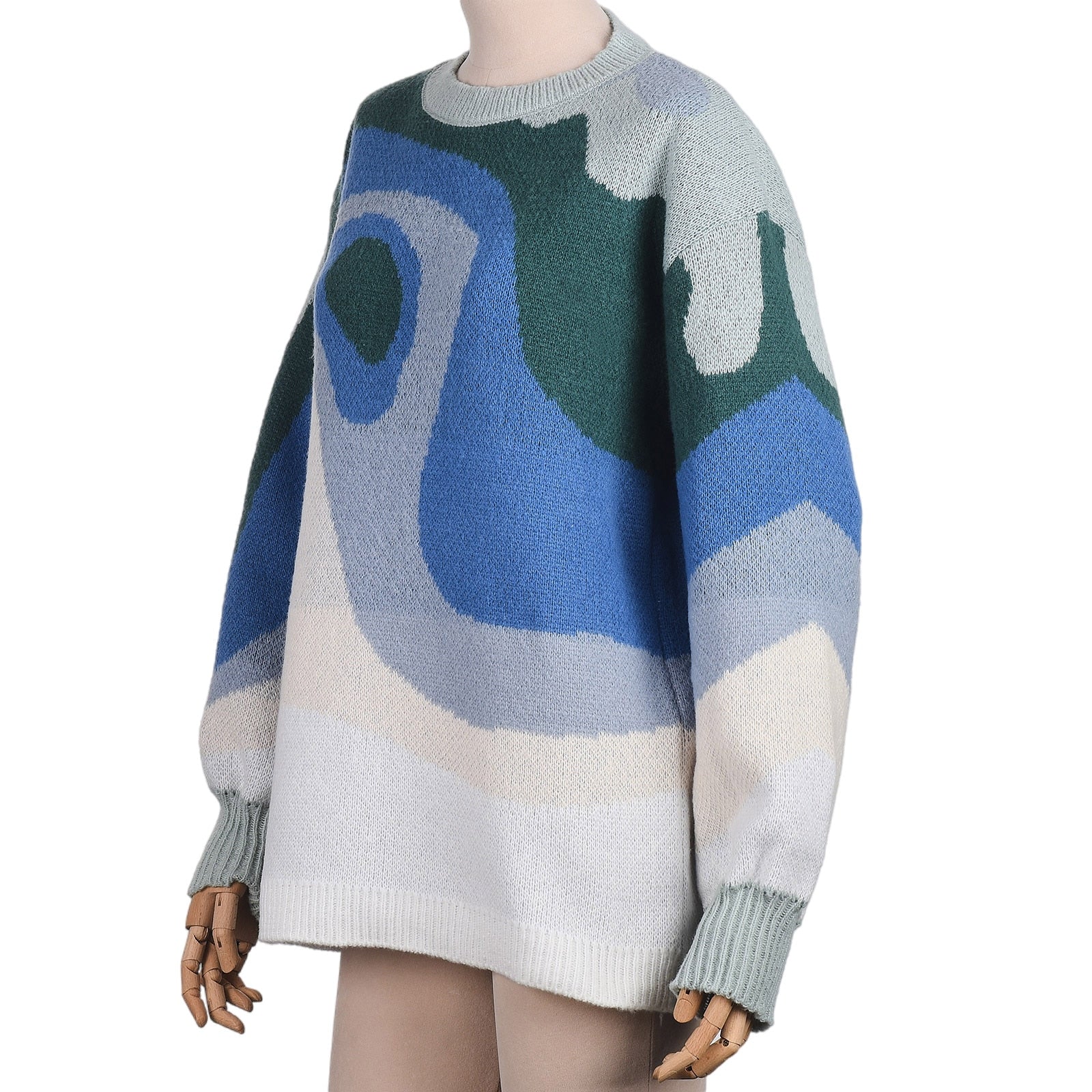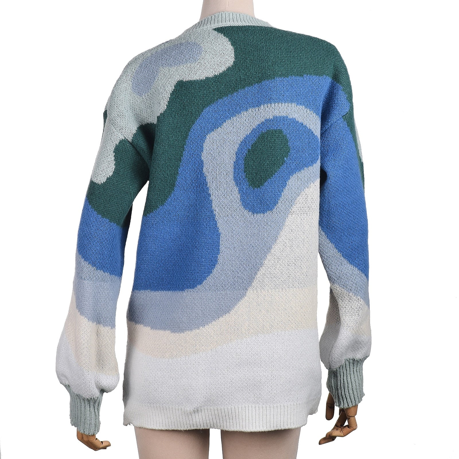 Let the soothing colors and wave-like pattern of this sweater transport you to a serene coastal paradise. With its cozy and comfortable fabric, it wraps you in warmth and embraces you like a gentle ocean breeze.