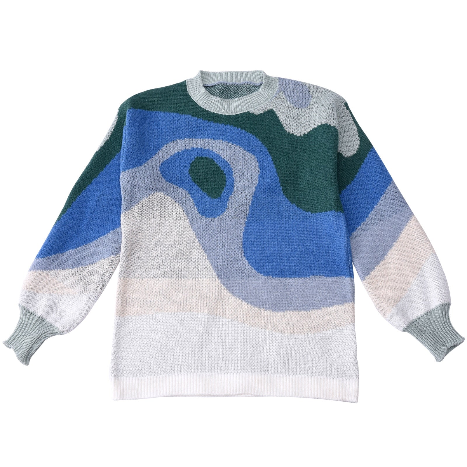 Crafted with meticulous attention to detail, this sweater embraces the beauty of nature's elements. The thermal wave-like design adds a dynamic and mesmerizing touch, drawing attention and captivating onlookers with its fluidity and grace.